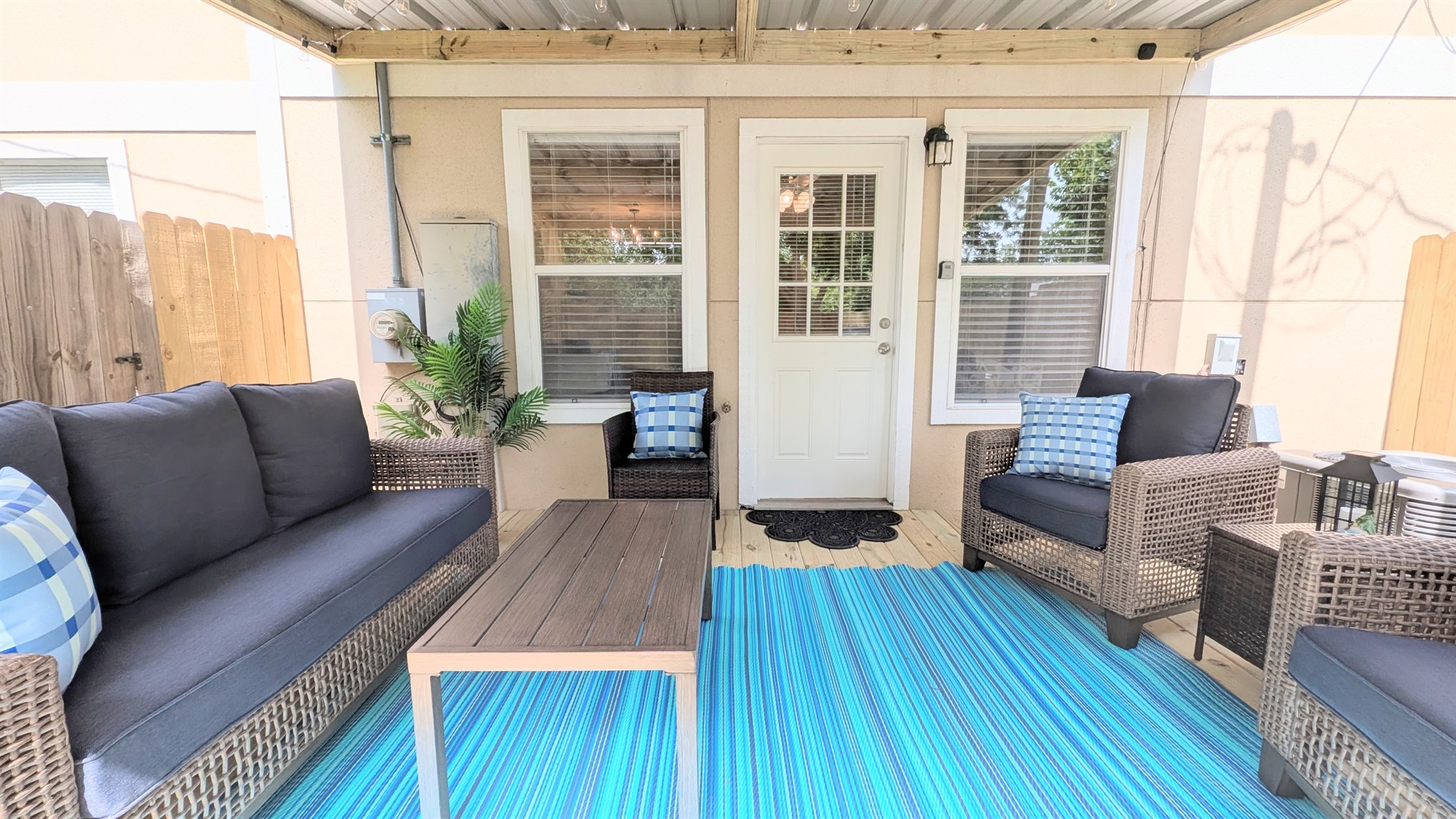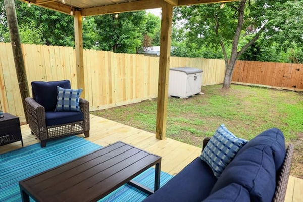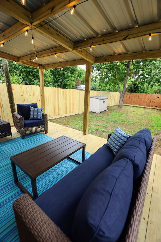 Head outdoors to the fenced backyard for games and fresh air, or enjoy a quiet evening on the covered patio under glowing string lights. Comfortable seating and a relaxing ambiance make it a perfect spot to unwind.
