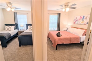 Rest easy in one of the 3 spacious bedrooms with 4 beds, and a full-size sofa bed in the living area. Designed for peace and comfort, each bedroom includes: