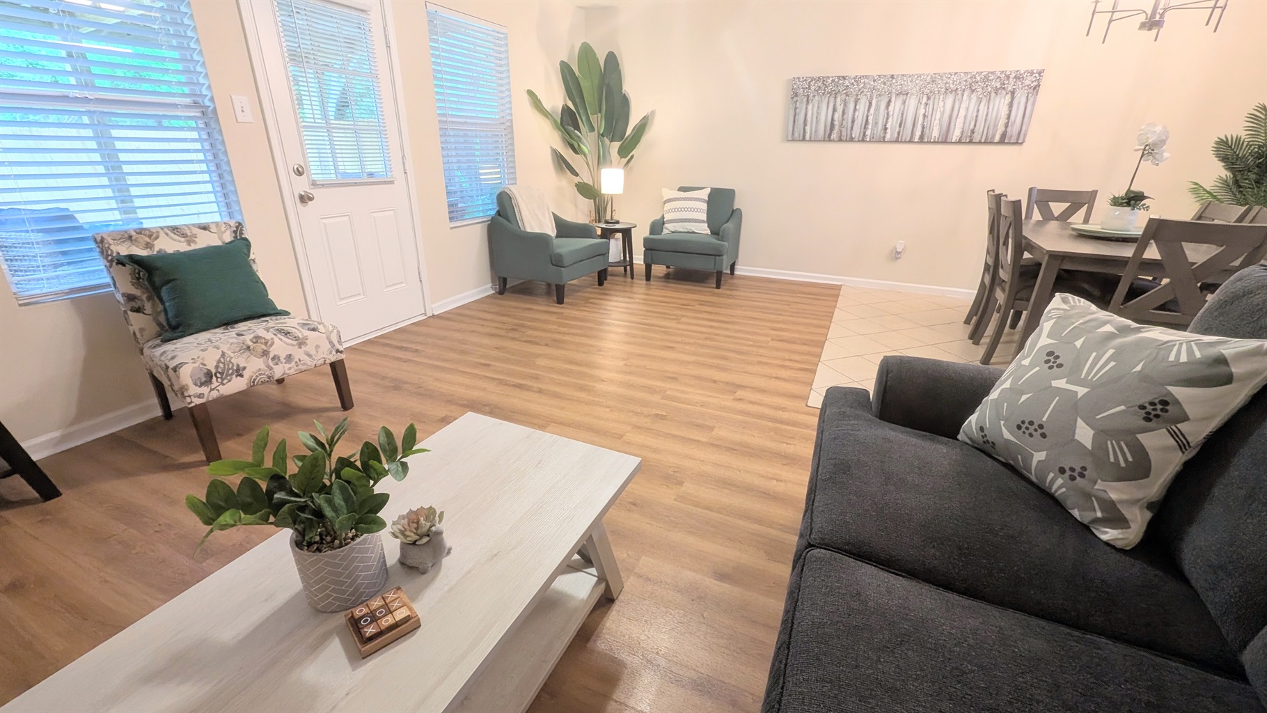 3 Bedrooms • 3 Bathrooms (2 full, 1 half) 3 Baths (2 full, 1 half) • Sleeps 5-8Relax in comfort and style in this thoughtfully designed two-story townhouse—perfect for families, remote workers, or anyone looking for a peaceful retreat. Nestled in a quiet neighborhood yet close to top local attractions, this fully stocked home comfortably accommodates up to 8 guests.