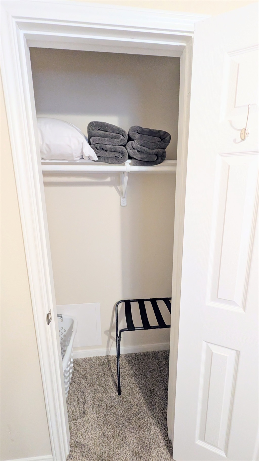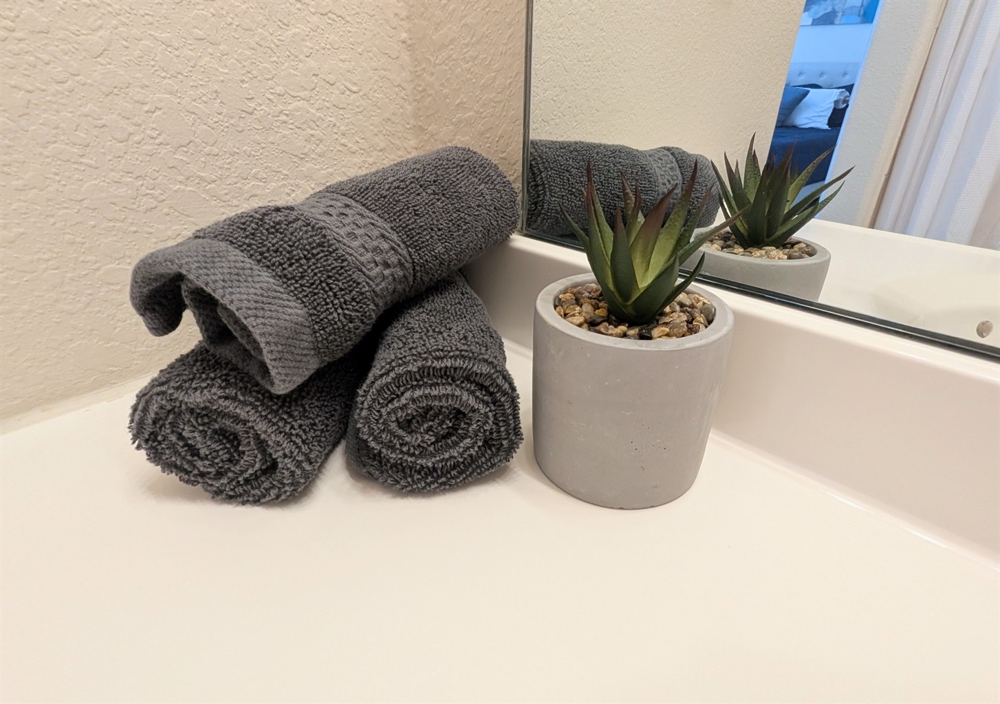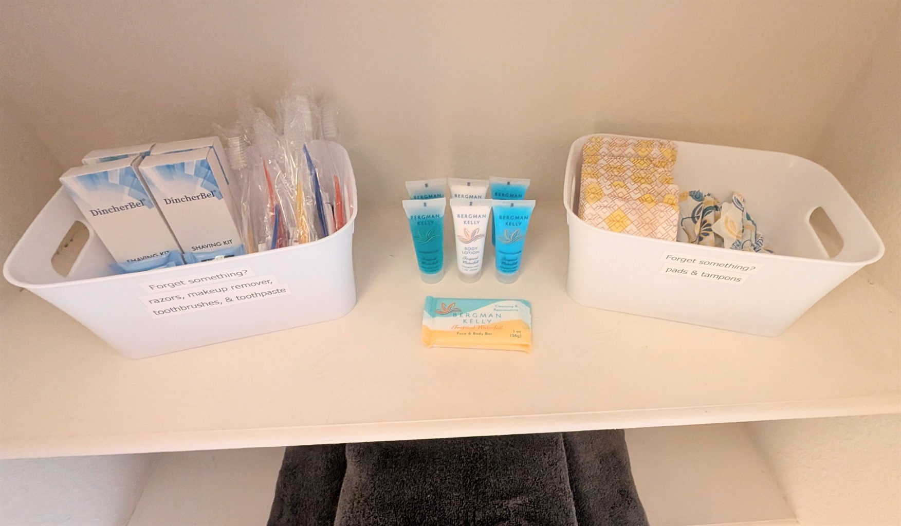 For added convenience, the in-unit washer and dryer come with complimentary detergent, stain remover, dryer sheets, and an iron with ironing board.