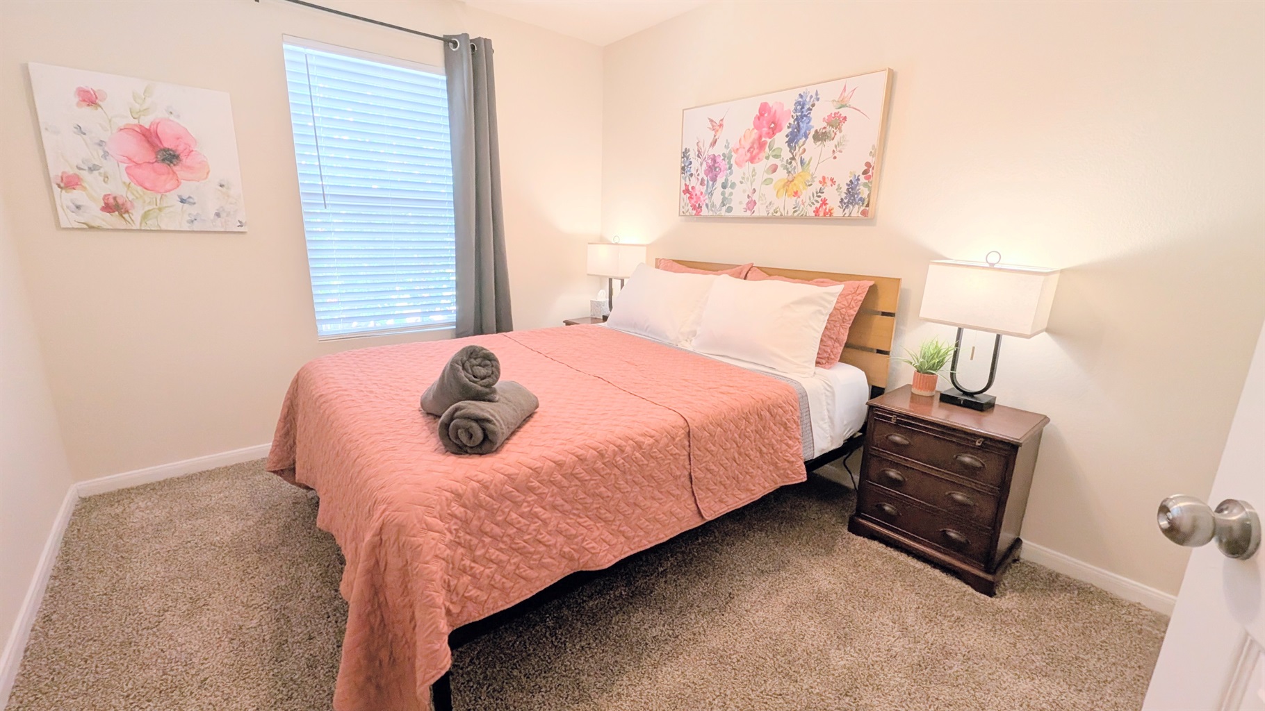 You'll find 3 spacious bedrooms, 4 beds, and a queen-size sofa bed. All bedrooms feature plush bedding, room darkening curtains, bedside charging ports, alarm clocks, and ceiling fans, making it easy to unwind after a busy day.