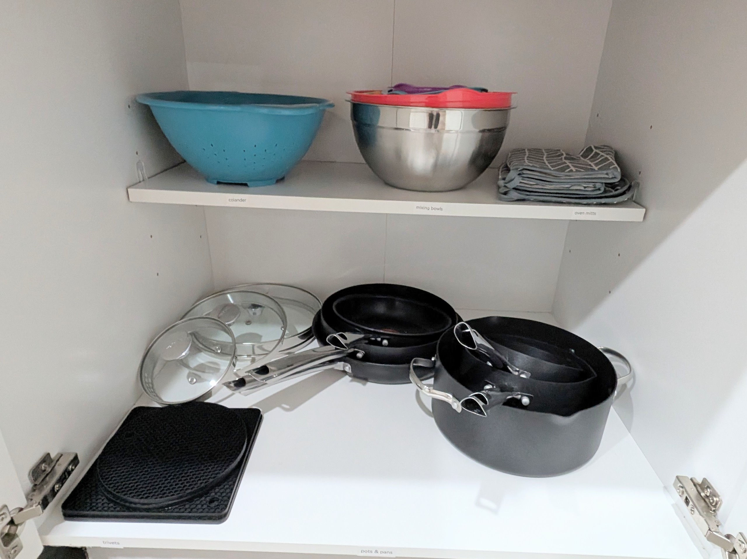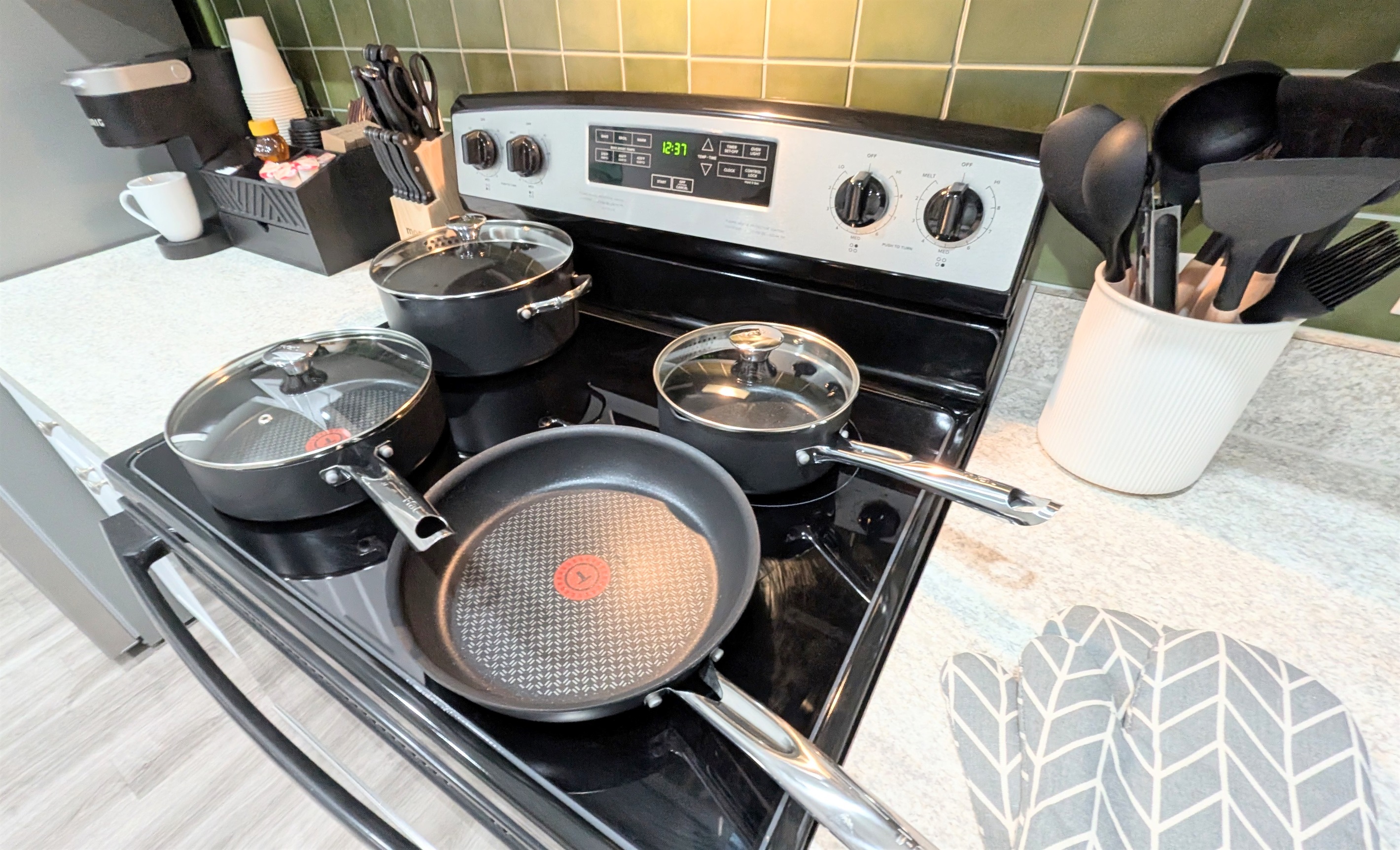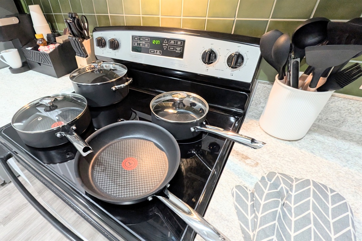 Full set of pots & pans, mixing bowls, and colander are stocked for your use.