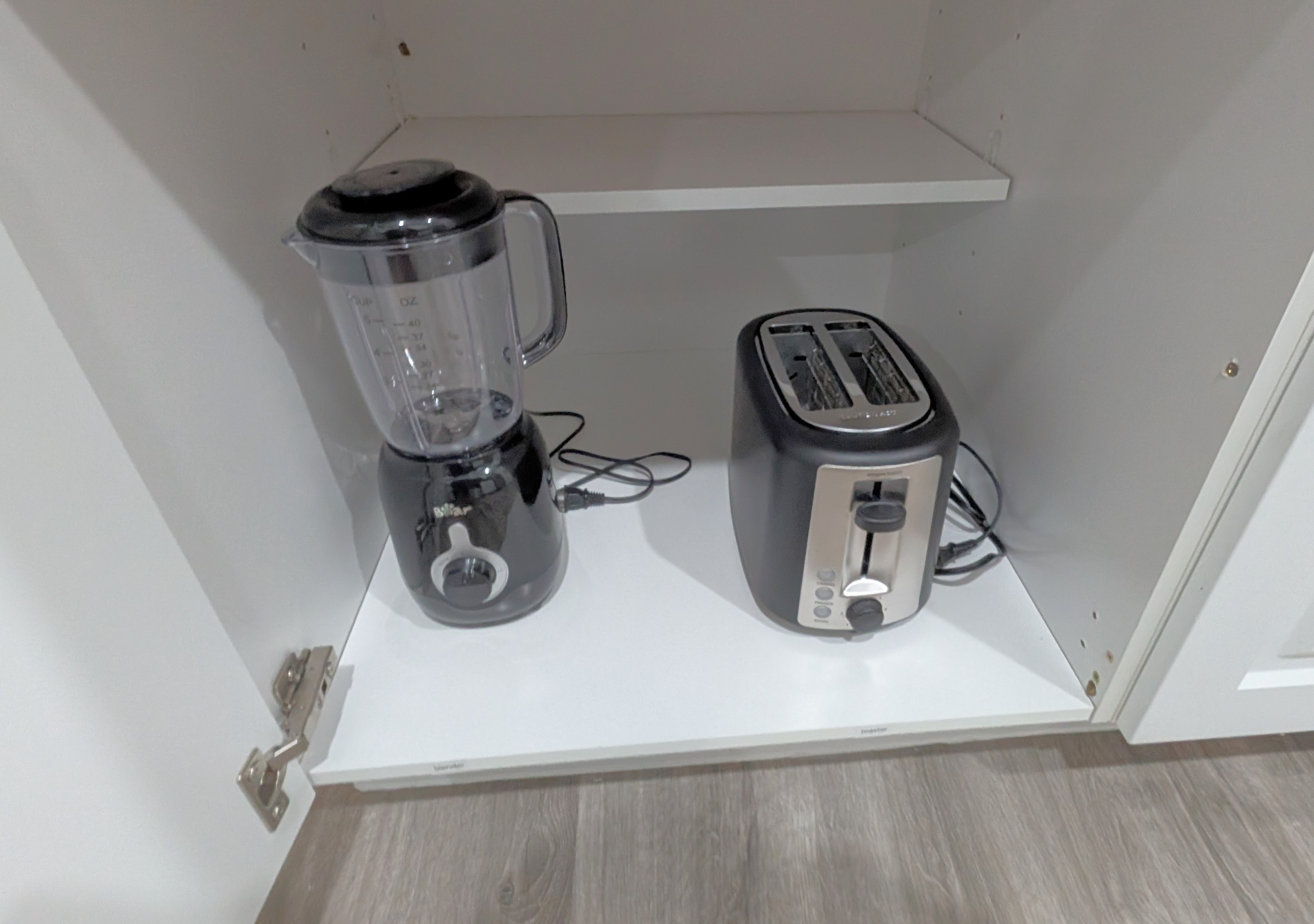 The fully equipped kitchen features cookware, kid-friendly dishware, basic spices, and appliances including a K-Cup coffee maker, toaster, and blender. Whether you're whipping up breakfast or a full family dinner, you’ll have everything you need.