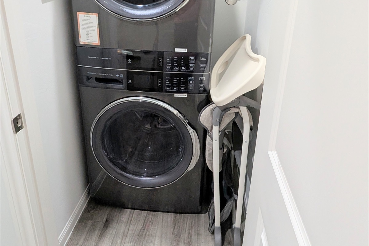 For added convenience, enjoy the in-unit washer and dryer with complimentary detergent, stain remover, dryer sheets, and an iron with ironing board.