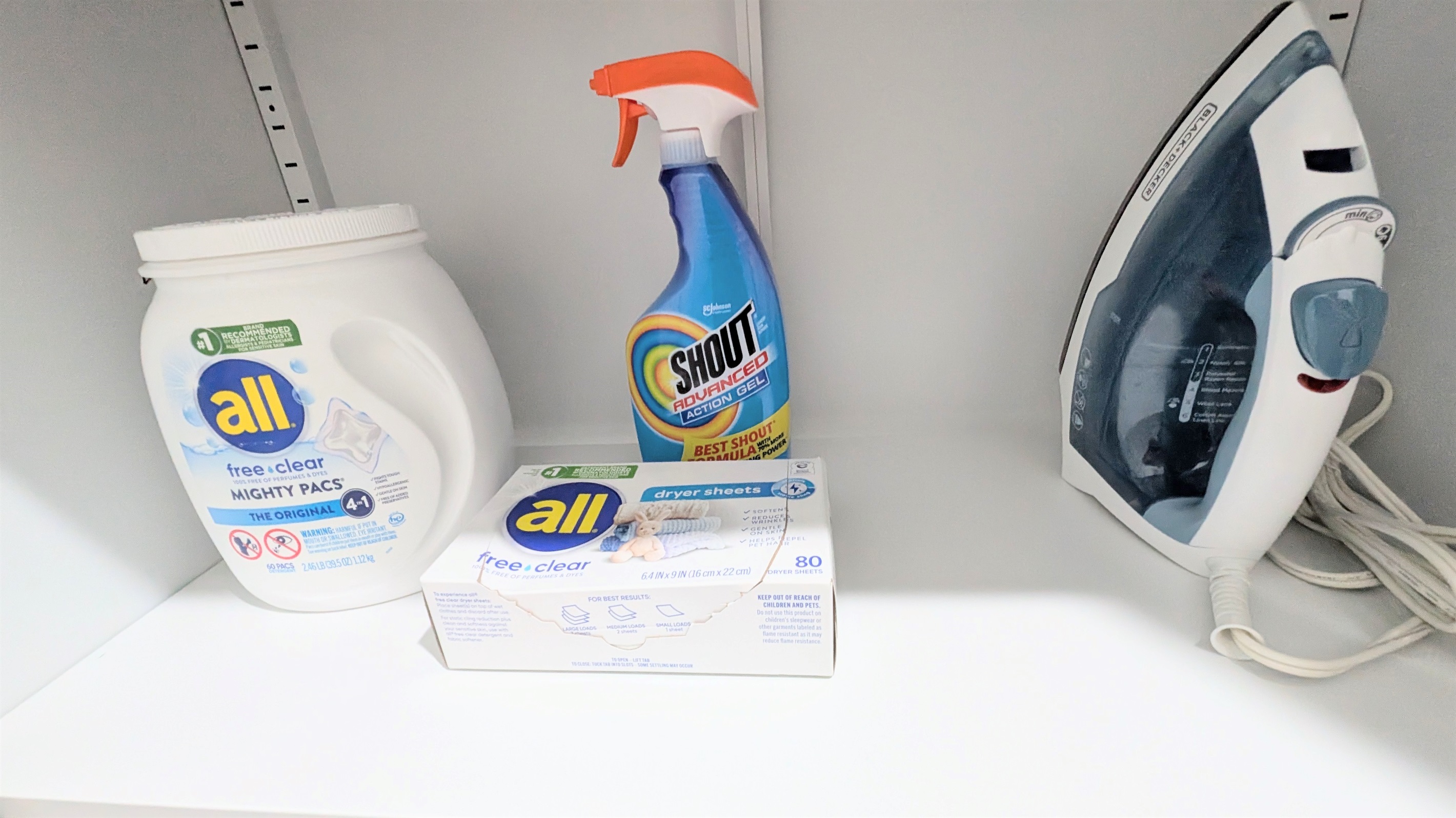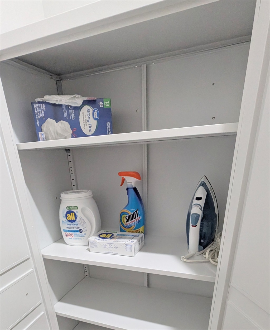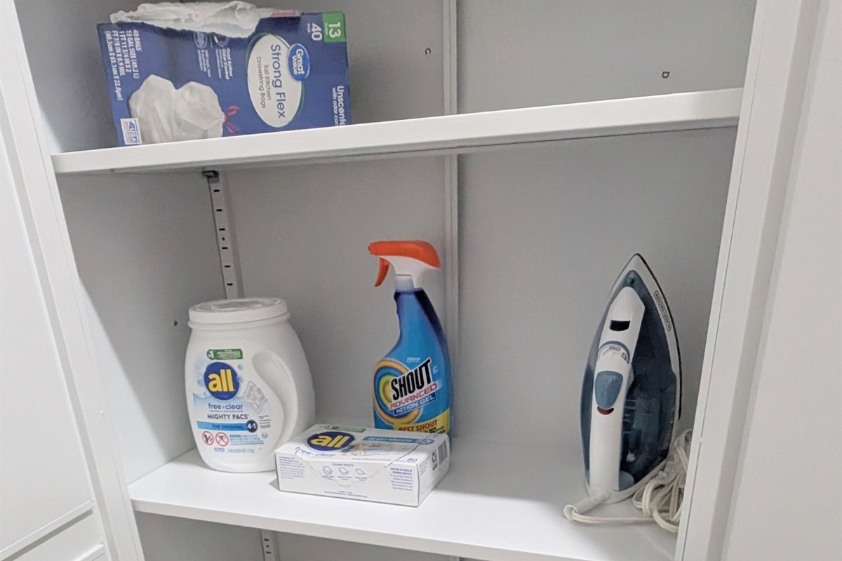 Host provides laundry pods, stain treatment spray, dryer sheets, and a full size iron.