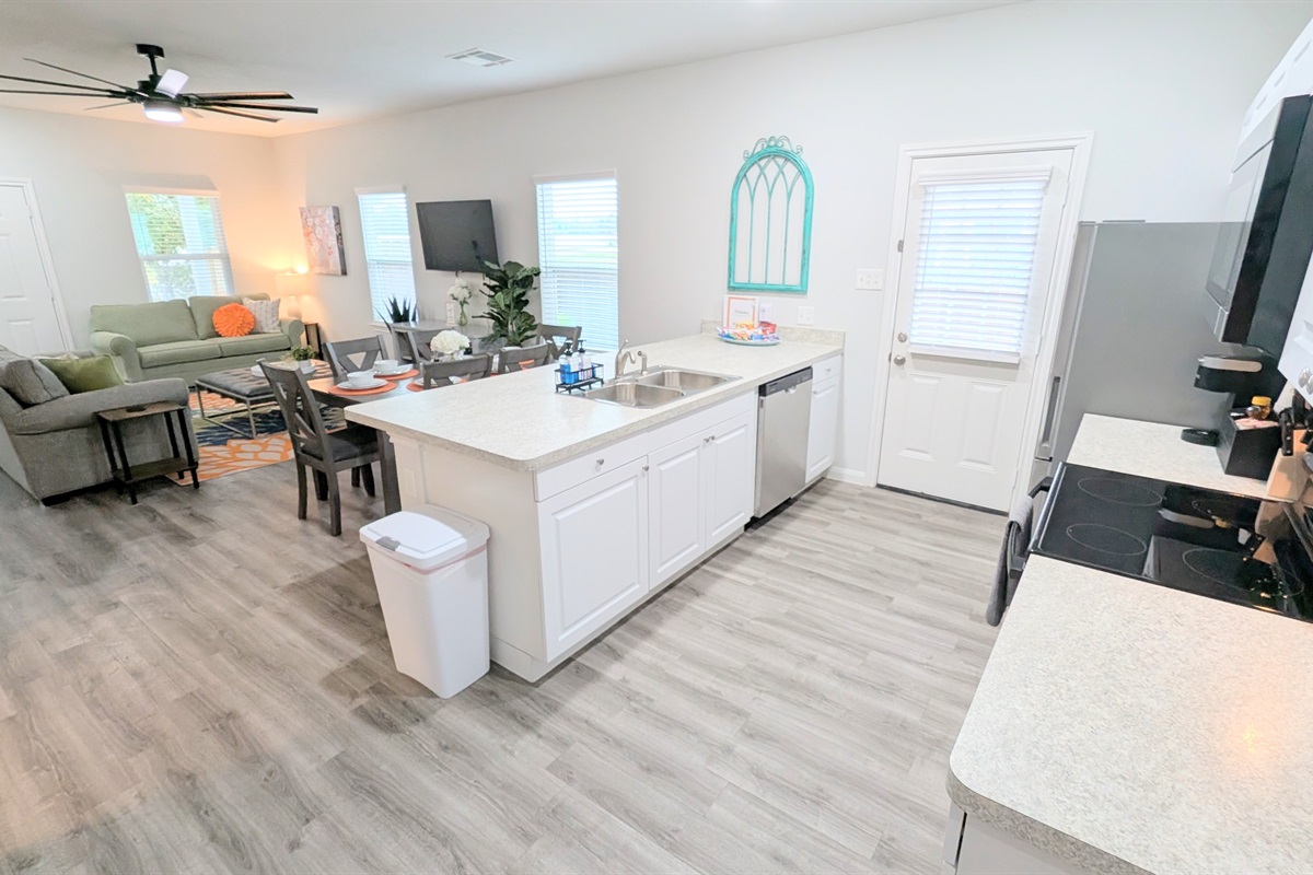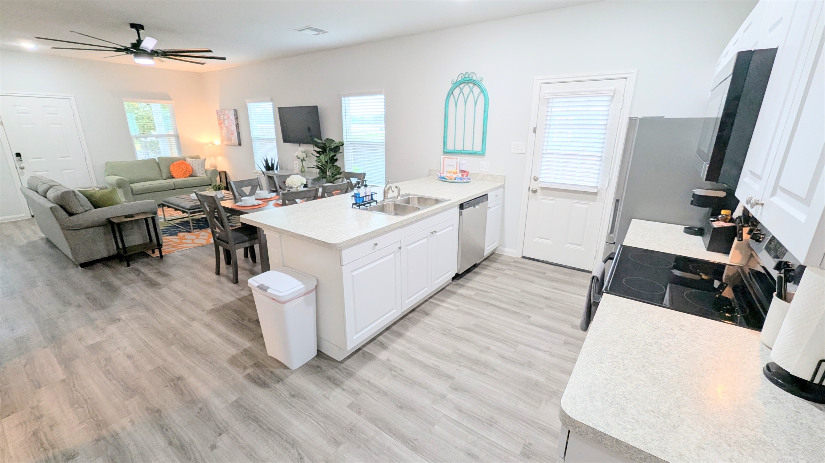 Open concept kitchen, living, and dining space makes it easy to spend time with family.