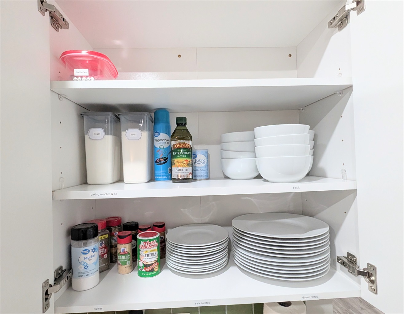 Kitchen also has cutting boards, baking pans, hand mixer, and food storage containers.