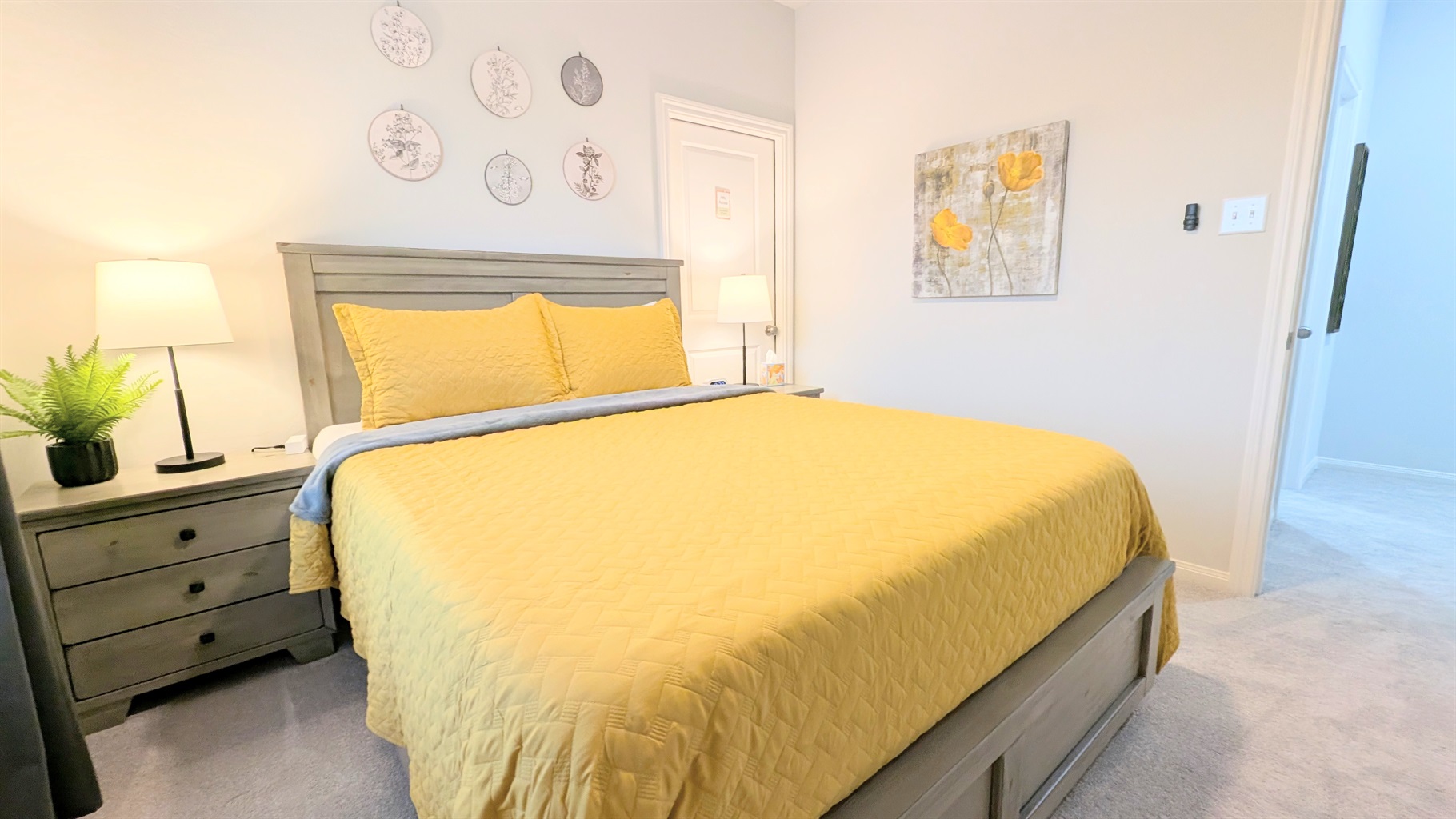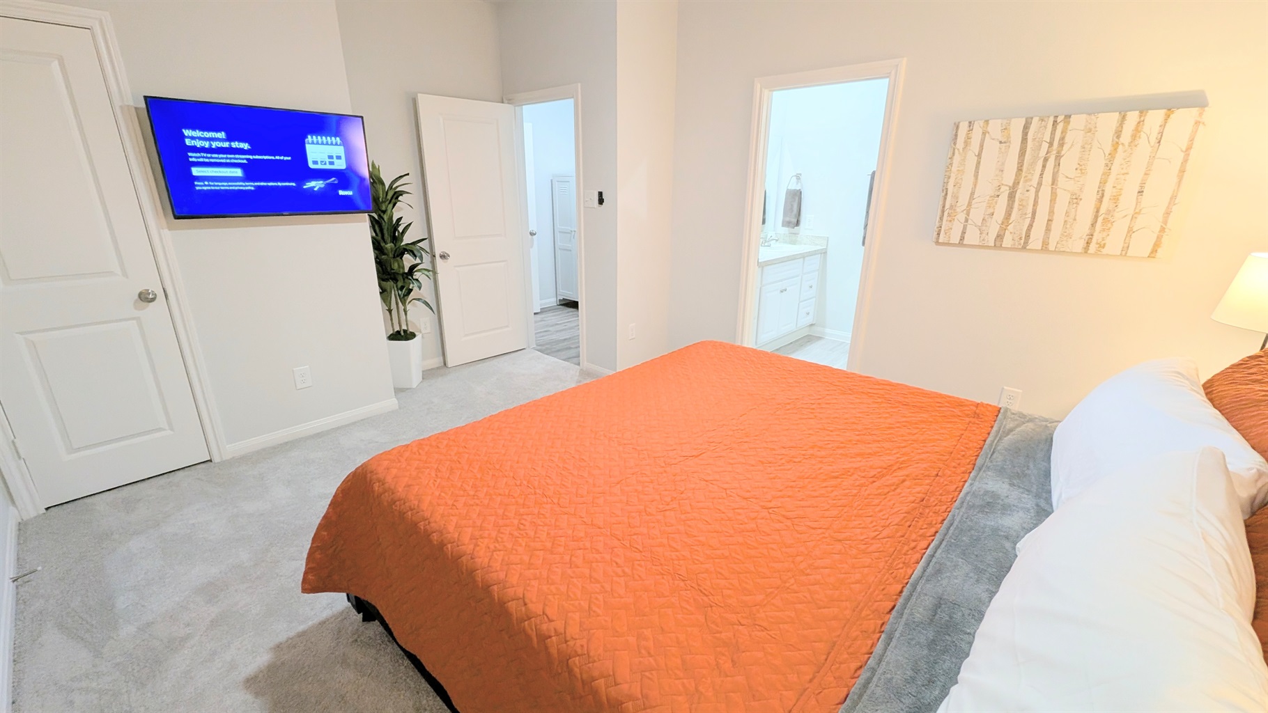 Bedroom has Roku smart TV to stream all your favorite shows.